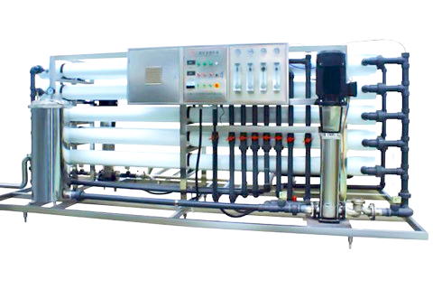 原水加壓泵→多介質(zhì)過濾器→活性炭過濾器→軟水器→保安過濾器→第一級反滲透機(jī)→第二級反滲透機(jī)→儲水罐→純水輸送泵用水點(diǎn)